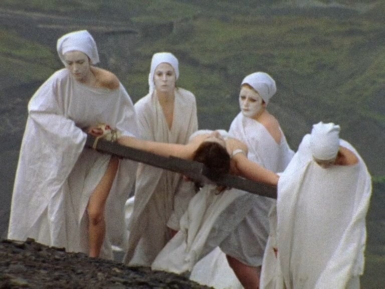Film birçok ilgi çekici sekansa ev sahipliği yaparak sembolizmin biçimlendirdiği bir portre niteliği taşıyor; kulakları felç eden çello sesleri, aynadaki yansımasından kendi gerçekliğini keşfeden bir kadın karakter, bir kızın baltayla dövüldüğü an, her yere kanın sıçradığı ve bir grubun gürültülü bir biçimde enstrümanlarını çaldığı sahne, ve ruhsal ritüeller. O zamanın toplumsal tabularının yıkılış sürecini sinirleri geren bir haykırışla aktarıyor. İzleyiciye çıplak kadın vücudunu, adet görmeyi, evliliği ve hristiyanlığı simgeleyen sahneler gösteriliyor. Yanlış anlaşılan ve yanlış tedavi edilen şizofrenik bir hastanın, ruhsal açıdan çöküntüye uğramış öteki kadınlarla birlikte hastane ortamında maruz kaldığı zulüm anlatısına ek olarak, erkek bakış açısına da bir başkaldırı niteliğini de gözler önüne seriyor. Yalnızca topluluğun belli bir kesimini su yüzüne çıkartmaktan ziyade, cinselliğin bastırılmışlığını da yıkıp filmin sonlarına doğru kadının çarmıha gerilmesi ile adeta dini bakış açılarına bir meydan okuyor. Bu, filmin çekildiği dönemdeki kadının toplumdaki yerini izleyiciye belirtiyor.